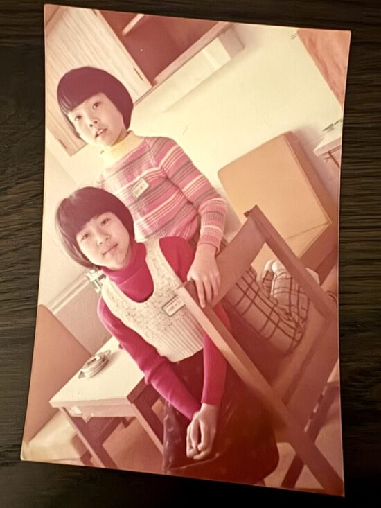 写真は、小学4年のときのヤマハ主催の音楽合宿にて。仲良しの純子ちゃんとの一枚。