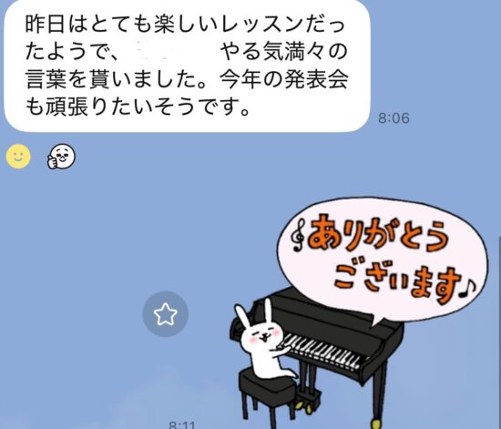 レッスンの成果は、その日のうちに毎回、動画とともに詳細を書き添えてお送りし、共有するのが常なのですが