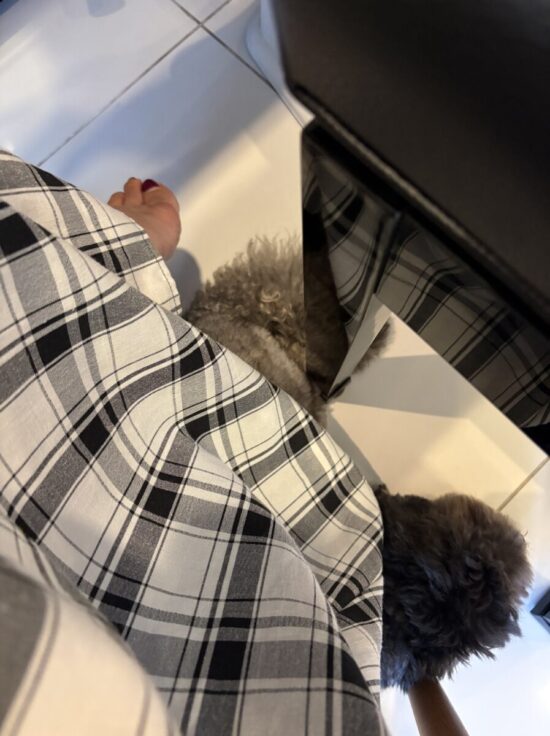 と言わんばかりに、身体をくっつけて、スカートの中に潜り込み、寝そべっています。