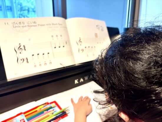 ト音記号とヘ音記号を同時に学ぶことで、左手が奏でる伴奏(低音・和音)と右手のメロディの関係性が理解しやすくなり、音楽的な読譜力が早めに身につきます。